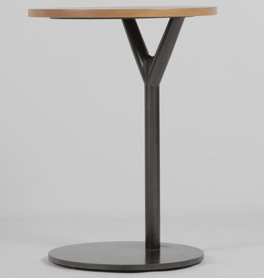 Living Room Black Round Wood Coffee Table With Steel Base Side